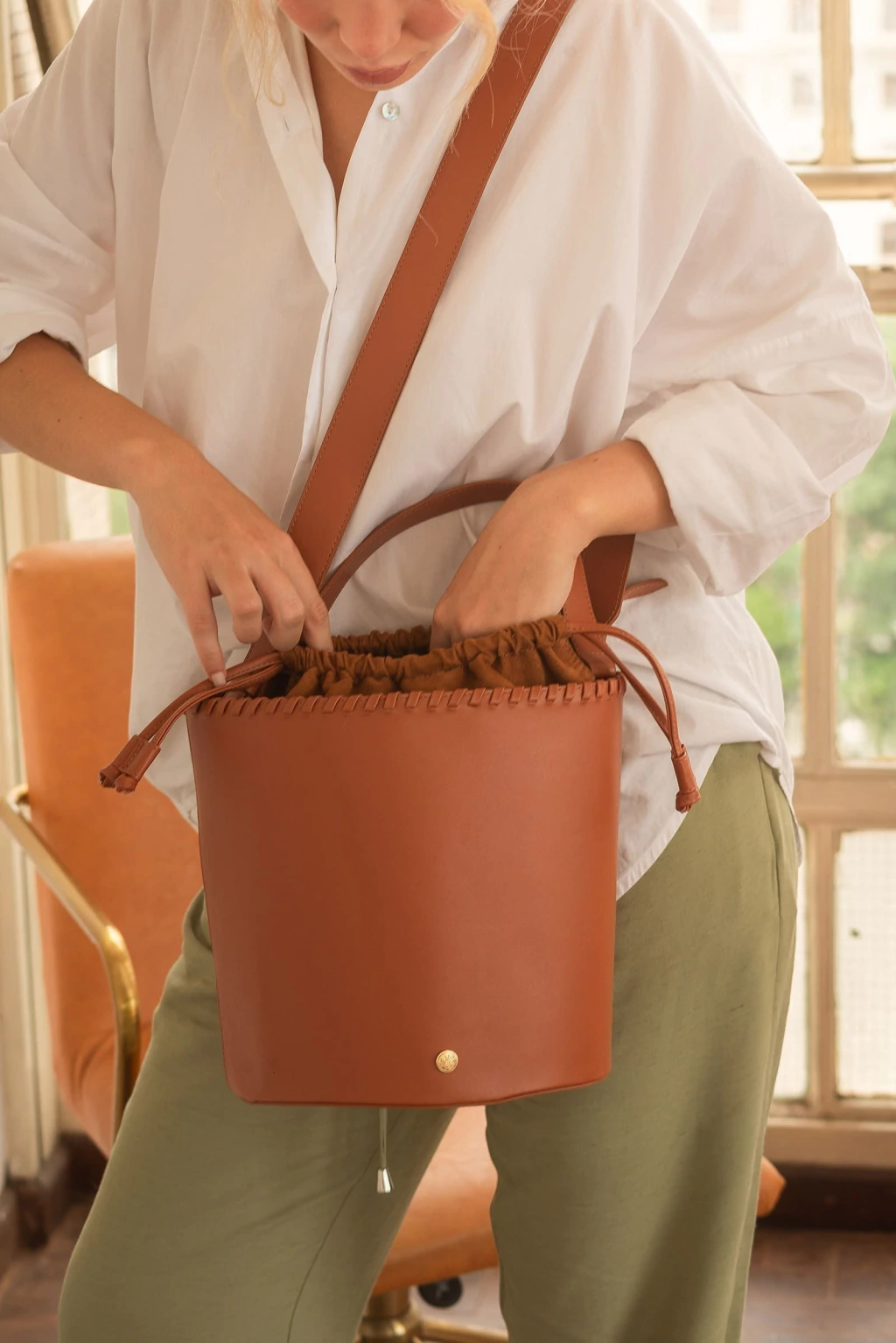 Apresentamos Antonela, a bucket bag que combina praticidade e estilo em um design moderno e espaçoso!
